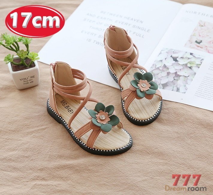 - kids 一輪フラワー 編み上げ サンダル 【ピンク 17cm】 韓国子供服 キッズ ビーチサンダル フォーマル 女の子