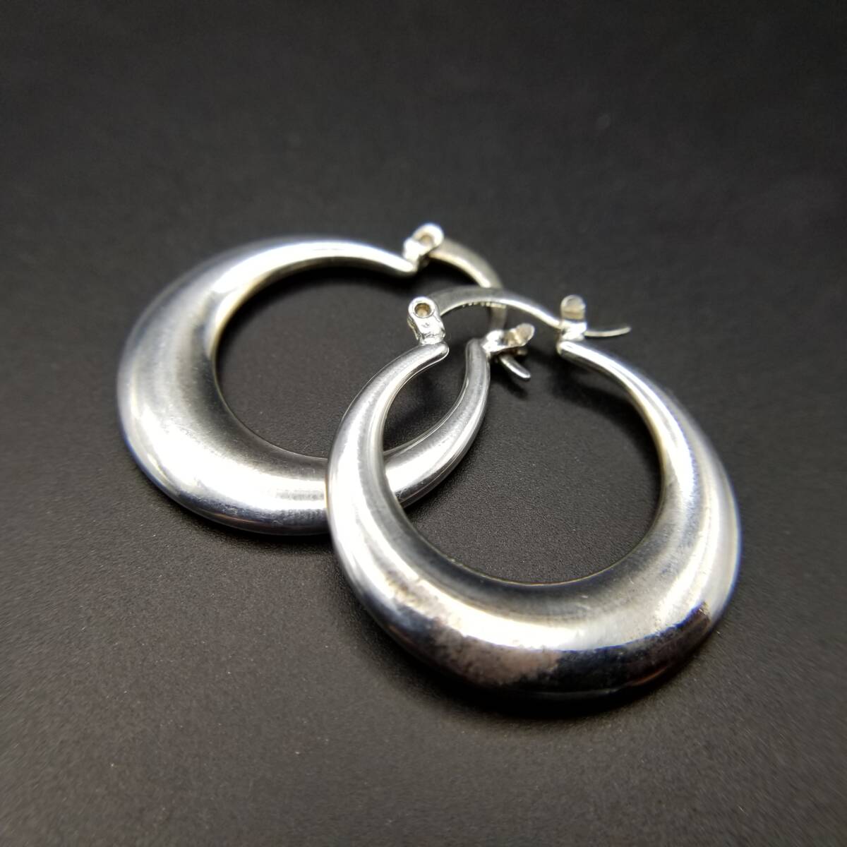 - ぷっくり 三日月型 ラウンド ヴィンテージ フープ ピアス シルバープレート 定番 シンプル スタイリッシュ 大ぶり 存在感 Y25-G