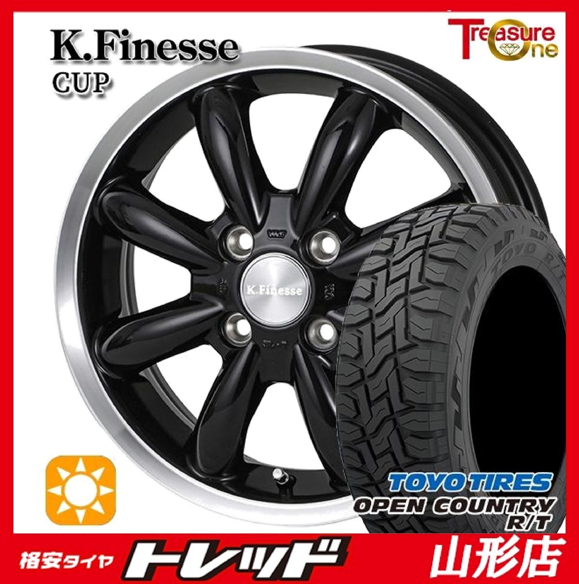 - 山形店 新品 夏タイヤホイールセット K.finesse CUP 12インチ 4.0j 4H100 +42 ブラックRP TOYO オープンカントリーR/T 145/80R12 2024年製