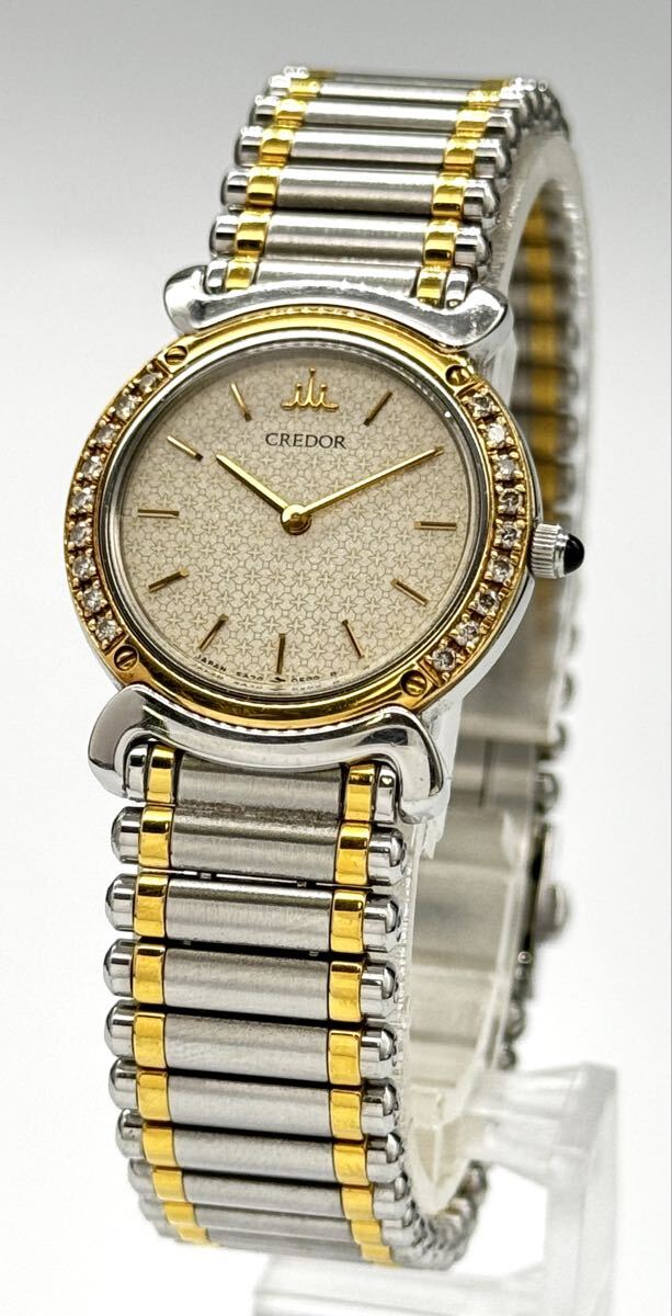 - 【セイコー 1円~】 「SEIKO」 5A70-0210 クレドール ベゼルダイヤ アイボリー 腕時計 レディース クォーツ 稼働 U26H000