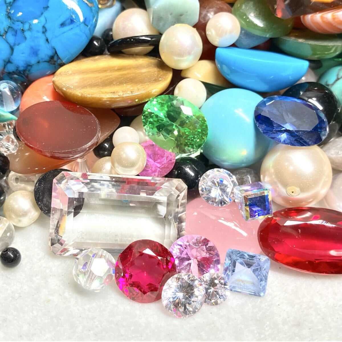 - 大量!!☆色石おまとめ5000ct☆n 約1000g サファイア ルビー CZ スピネル ローズ クォーツ トルコ石 パール カメオ 琥珀 ルース w2た6