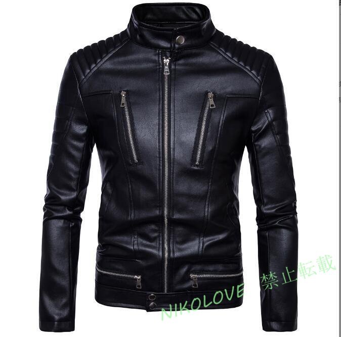 > ☆新品 ライダースジャケット メンズ 革ジャン レザー バイクジャケット ブルゾン アウター 立ち襟 防風 高級感 秋冬 M-5XL