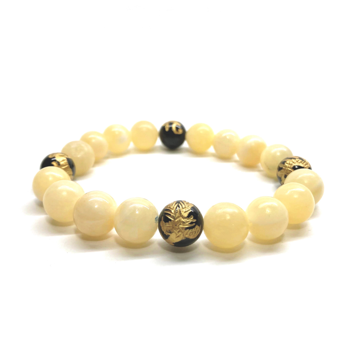> 10mm 四神獣金彫オニキス×アラゴナイト パワーストーン ブレスレット天然石 運気上昇 開運 金運 恋愛 青龍 白虎 玄武 朱雀 ☆