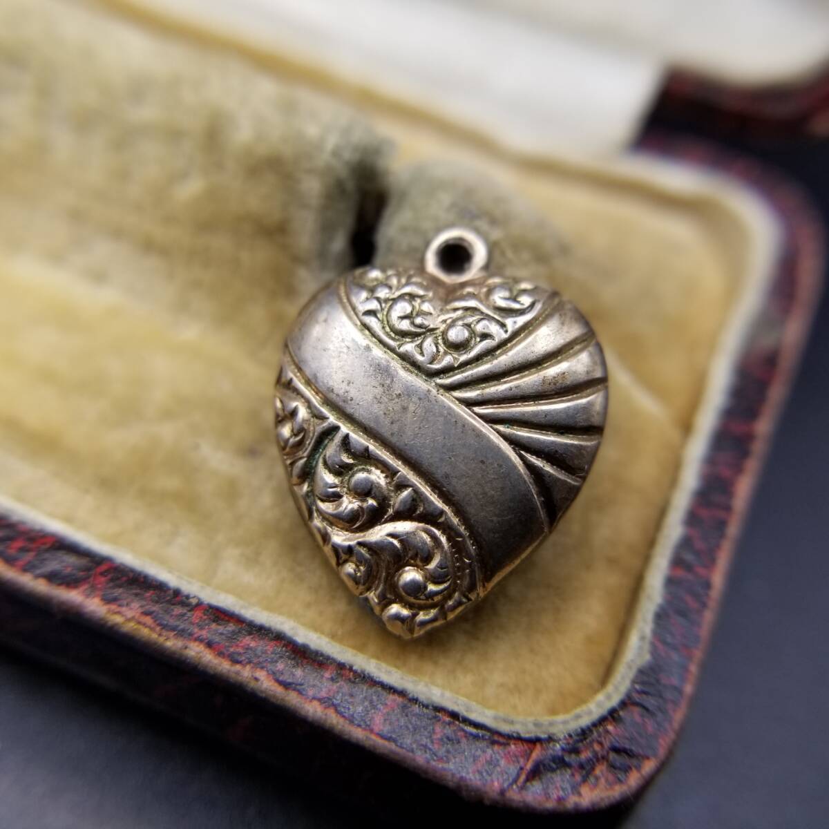 - WWII期 ヴィンテージ スウィートハートジュエリー アールヌーヴォー 金張り チャーム ペンダントヘッド 細かな装飾 Gold Filled Y24-Y