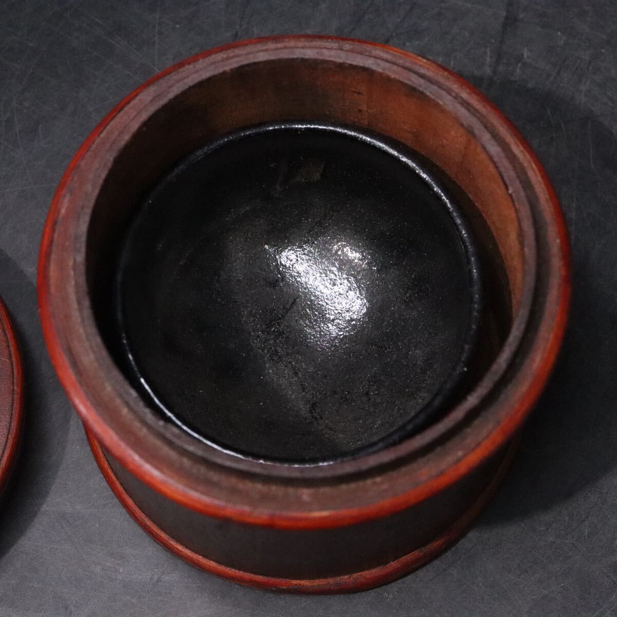 - 時代 黒釉小型 天目茶碗 ・ 木製 杢 碗筒 / 中国美術 天目 煎茶道具 煎茶碗 検索: 紫砂 紫泥 唐木 珍木 .B1313