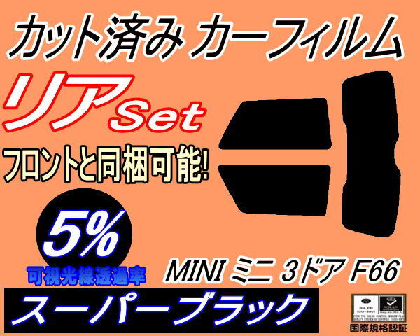 - カーフィルム スーパーブラック カット済み リアセット MINI ミニ 3ドア F66 (s) スモーク ガラスフィルム 22GC32