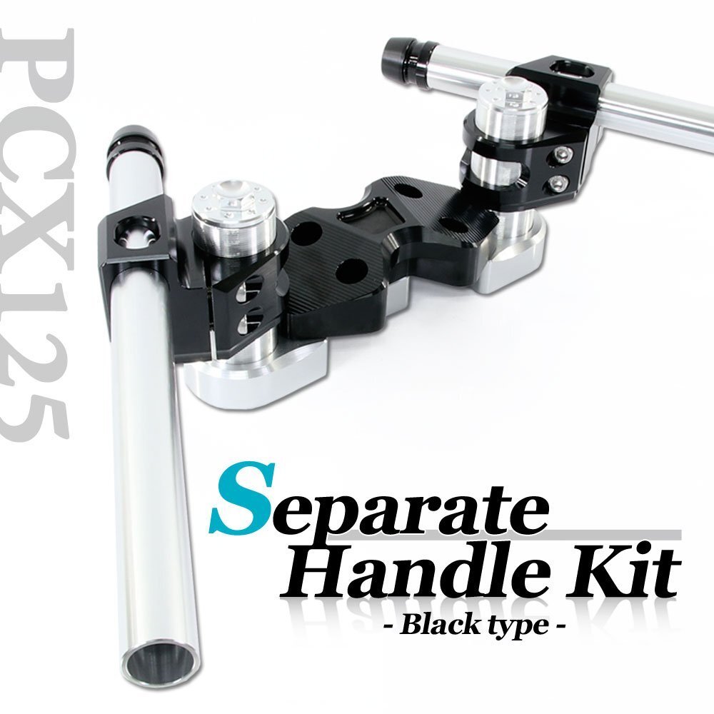 - PCX125 JF28 セパレートハンドル キット ブラック シルバー アルミ削り出し ブラケット付 ホンダ ハンドル カスタム パーツ バイク