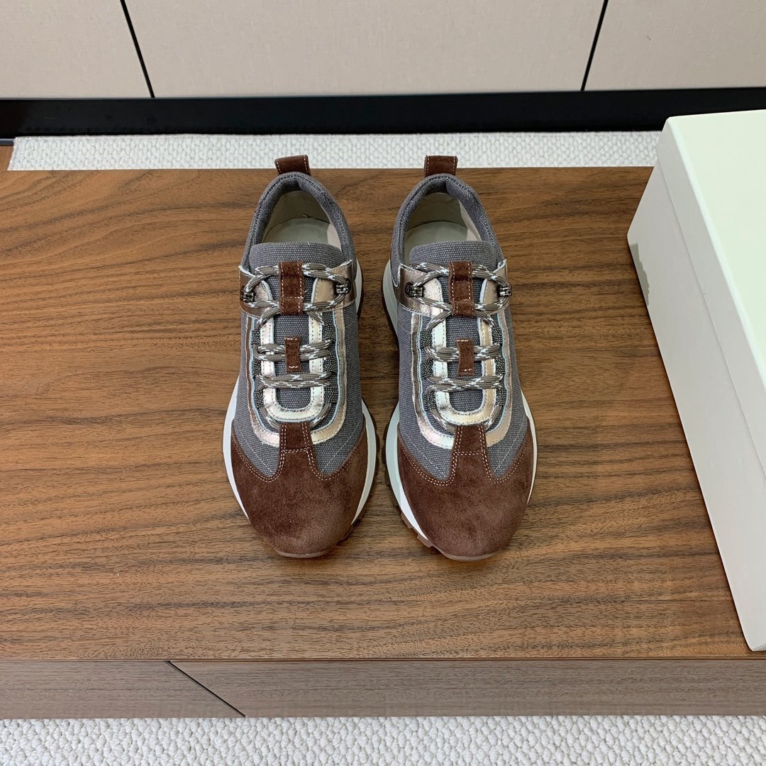 - 24.0cm【美品】ブルネロクチネリ★ レディース スニーカー、スエードレザー、メタリックアクセント、レースアップ、パール装飾
