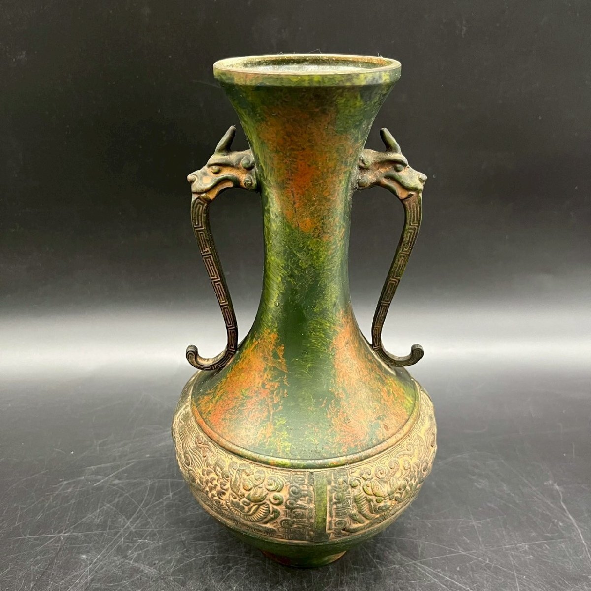 - CV1002-6-3 青銅 花瓶 花器 壺 龍 銅器 銅製 伝統 工芸品 置物 インテリア 高さ23.5㎝ 口径6㎝ 60サイズ