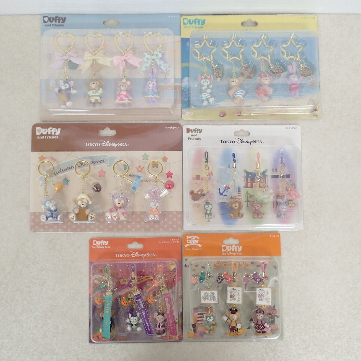 > 未使用 ダッフィー&フレンズ キーチェーン/ストラップ ダッフィーのオータムスリープオーバー 等 6点セット Disney ディズニー【IO