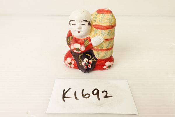 - 【k1692】花巻人形 花巻土人形 「俵担ぎ童子」 江戸期 古土人形 東北 郷土玩具 伏見 相良 堤 縁起物 希少
