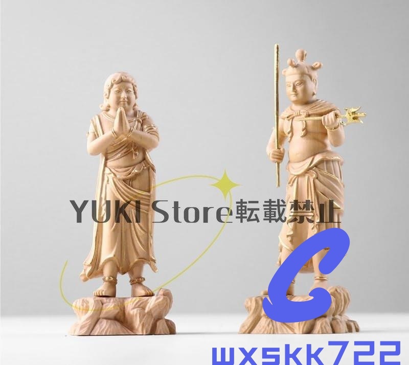 - 不動明王脇士 二童子像(制多迦・矜羯羅)木彫り仏像 二童子 原木