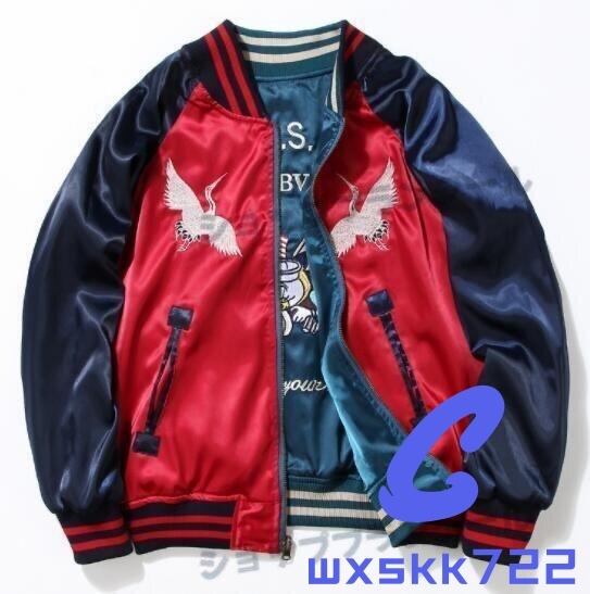 - 両面着ジャケット リバーシブル刺繍 スタジャン スカジャンAmericaフライトジャケット野球服 メンズ ジャンパー ブルゾン欧米 [M~2XL]