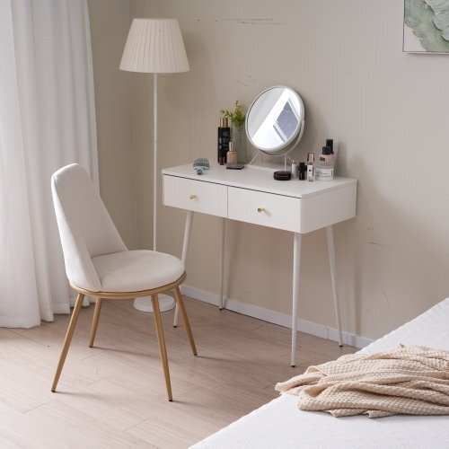 - ドレッサー コンパクト 化粧台 メイク台 一面鏡 360°回転鏡 座デスク ミシン台 コスメ台 鏡台 おしゃれ 大量収納 ドレッサーのみ