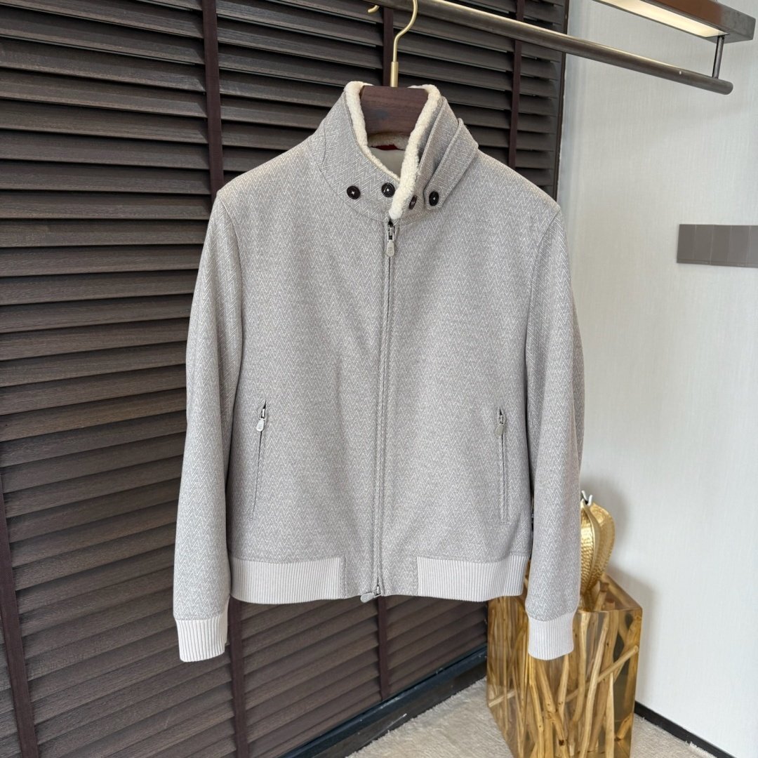 > ライトグレーL★送料無料★ブルネロクチネリ★メンズビジネスカジュアルスタンドカラージャケットウールブレンド秋冬ノーカラージャケット