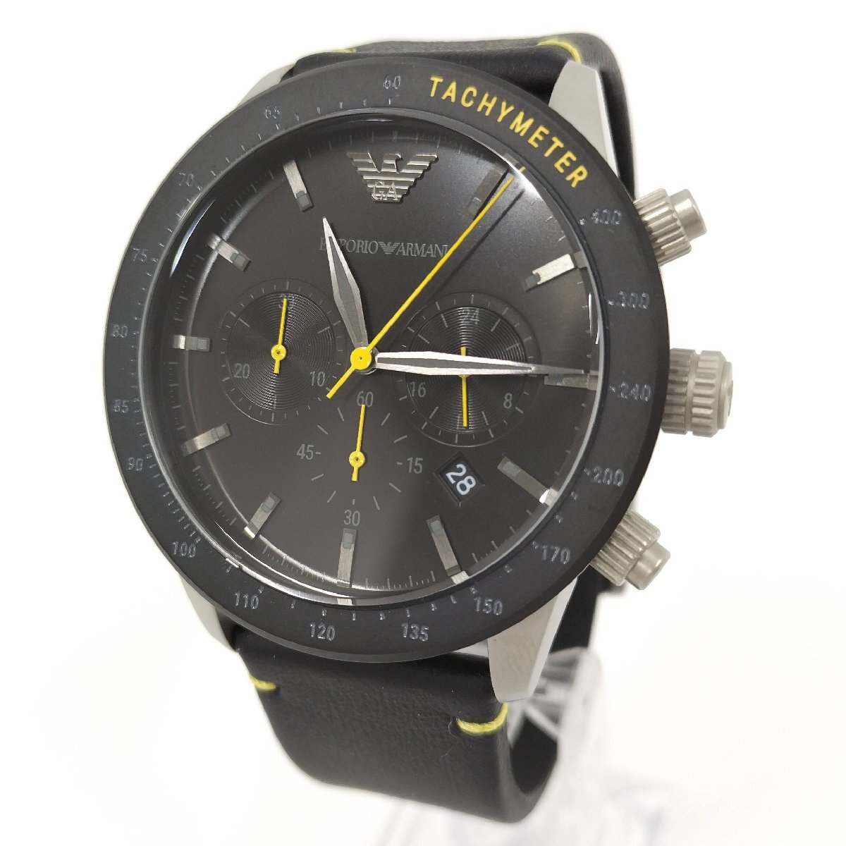 > ●エンポリオアルマーニ EMPORIO ARMANI AR-11325 メンズ腕時計 クロノグラフ ブラック文字盤 クォーツ 中古[ne]um18
