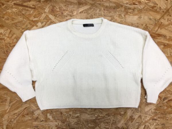 - moa モア ニット セーター レディース アクリル100% サーマル編み ドルマンスリーブ ショート丈 白