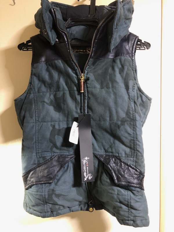 - 定価42,120円 新品未使用・タグ付き KYOJI MARUYAMA キョウジマルヤマ■ ゴートレザー レザー切替えカモフラベスト 迷彩 山羊革