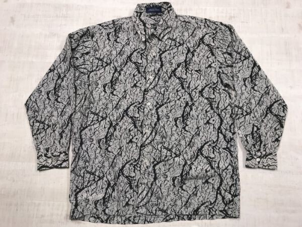 > Makku Frien オールド レトロ 古着 デザイン アート ART 総柄 長袖シャツ 柄シャツ ポリシャツ メンズ ライトグレー