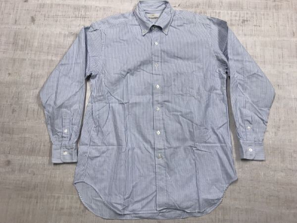 - Norman Hilton ノーマンヒルトン 国産レトロ アイビー トラッド ビジネス 古着 ボタンダウン 長袖 ストライプ シャツ メンズ 日本製 水色