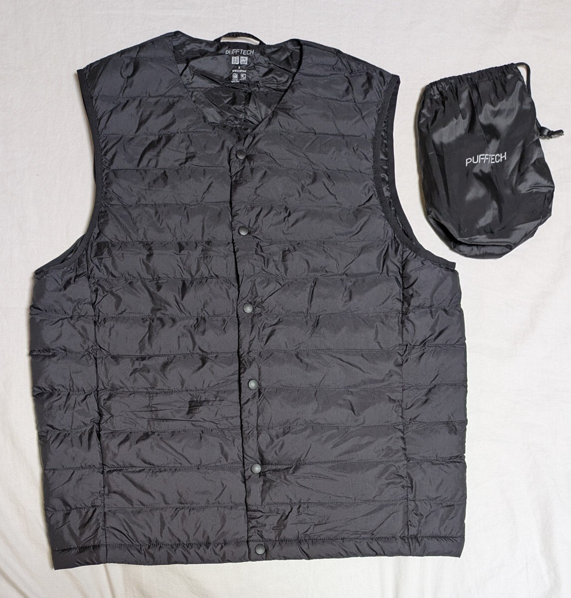- 4885送料300円 ユニクロ UNIQLO パフテック コンパクトベスト ノーカラー 311-470061 S メンズ ブラック系 ベスト ボタン