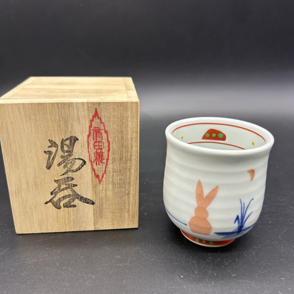 - 有田焼 うさぎ 加賀まりこ 光玉 湯呑 陶器 茶器 フ2