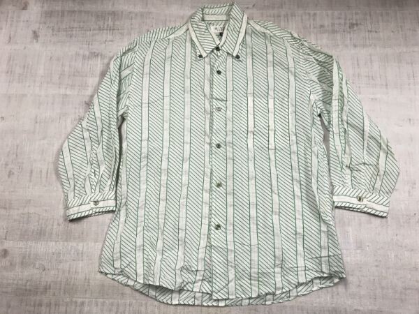 > a.v.v HOMME アーヴェヴェ Y2K レトロ モード 古着 変形ストライプ ボタンダウン 七分袖 ドレスシャツ メンズ 46 緑/白