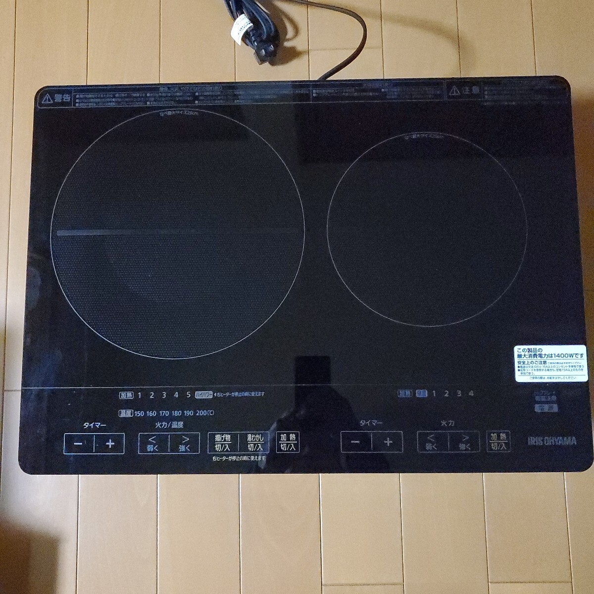 - アイリスオーヤマ IHクッキングヒーター IHC-WKG3S-B 1400W ブラック 中古品