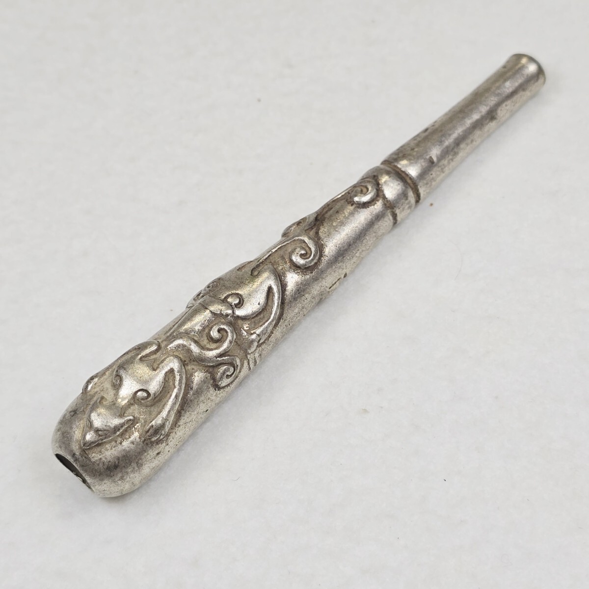 - 美品 白銅 細工浮彫 龍紋 パイプ 煙草具 激安 煙管