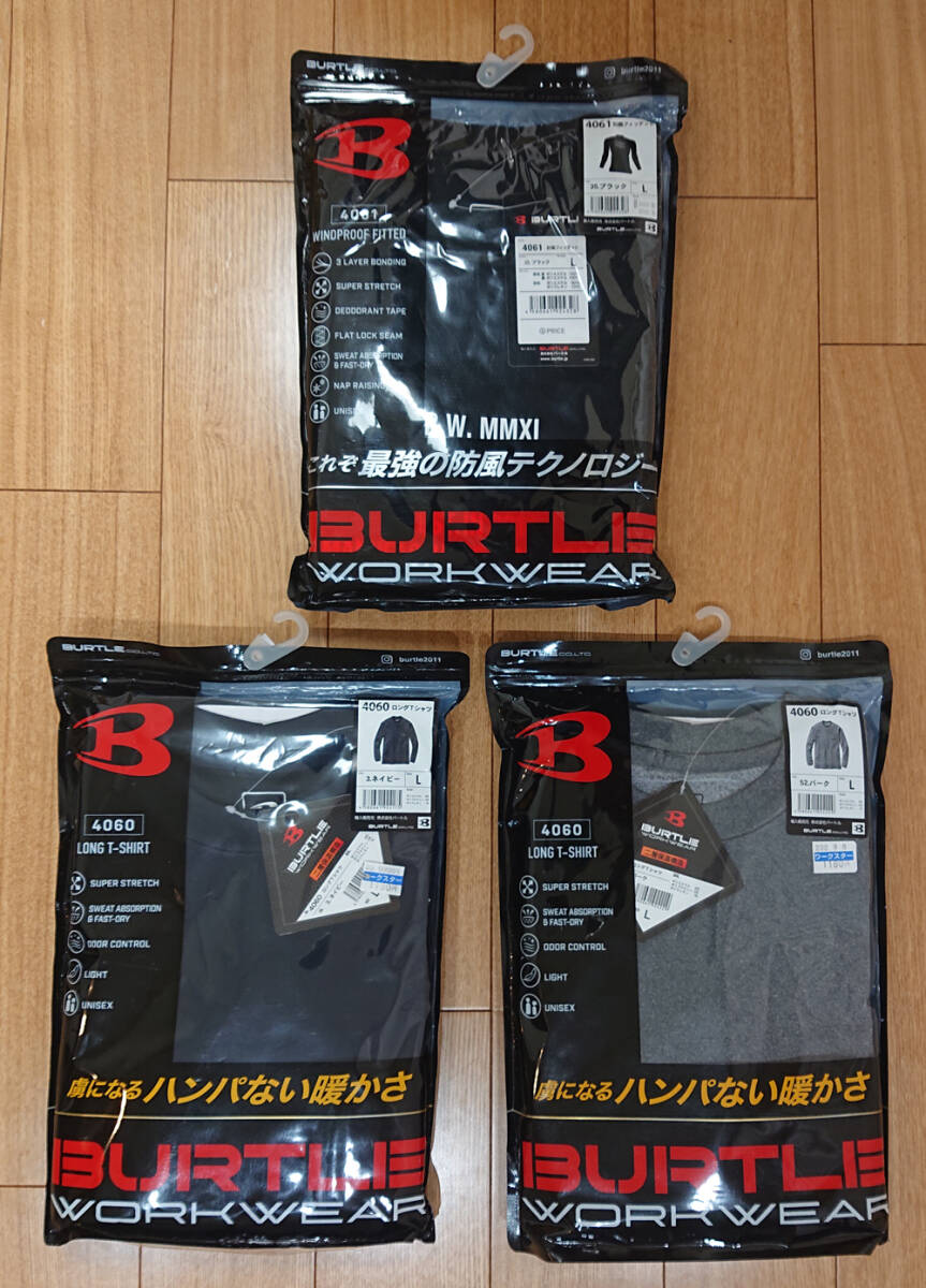 > BURTLE 4060 長袖Tシャツ ネイビー バーク L 4061 防風 インナー シャツ ブラック L バートル 防寒 インナーシャツ アンダーシャツ メンズ