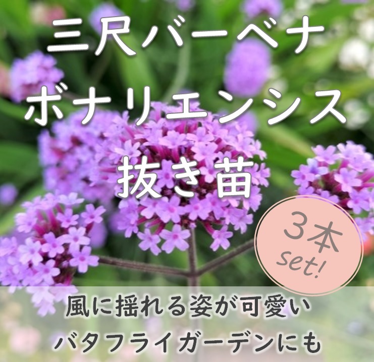 - 蝶を呼ぶ花◆三尺バーベナ の抜き苗 3株 ボナリエンシス ヤナギハナガサ サンジャクバーベナ 耐寒性◎ 宿根草 園芸 ガーデニング