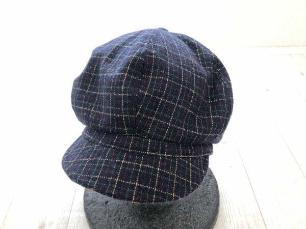 > パーソンズ PERSON'S レトロ トラッド ステッチ チェック ツイード キャスケット ハット 帽子 レディース ウール混合 56cm 紺