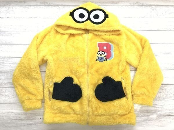 > ユニバーサルスタジオジャパン USJ ミニオンズ B 刺繍 キャラクター 公式グッズ なりきり ボアフリース パーカー メンズ S 黄色