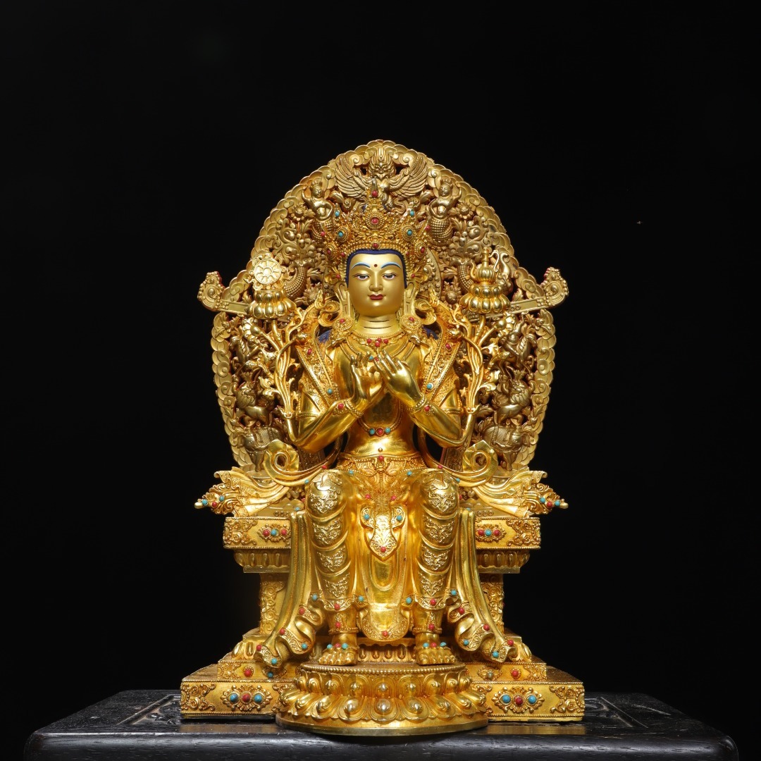 > ◆珍蔵◆ 明時代 古銅製 塗金 嵌多寶 彩絵 藏天度母菩薩 仏造像 細密細工造 置物 擺件 古賞物 骨董品 時代物 A01