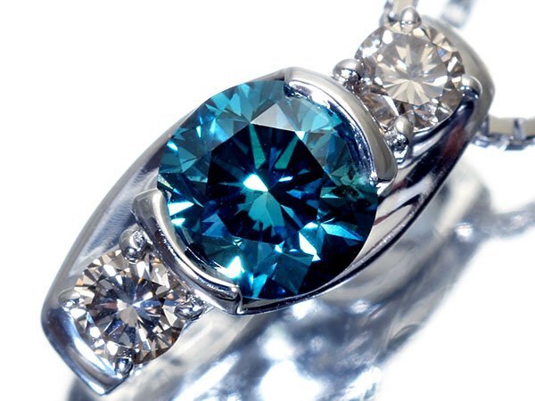 - 【ジュエリー極】眩い輝き!超大粒極上1粒天然ブルーダイヤモンド1.029ct&脇ダイヤ0.27ct 高級K18WGネックレス h7952ivm【送料無料】