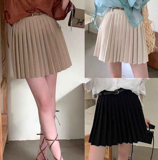 - 全4色 ミニスカート ハイウエスト フリル 切り替え シンプル S キャメル
