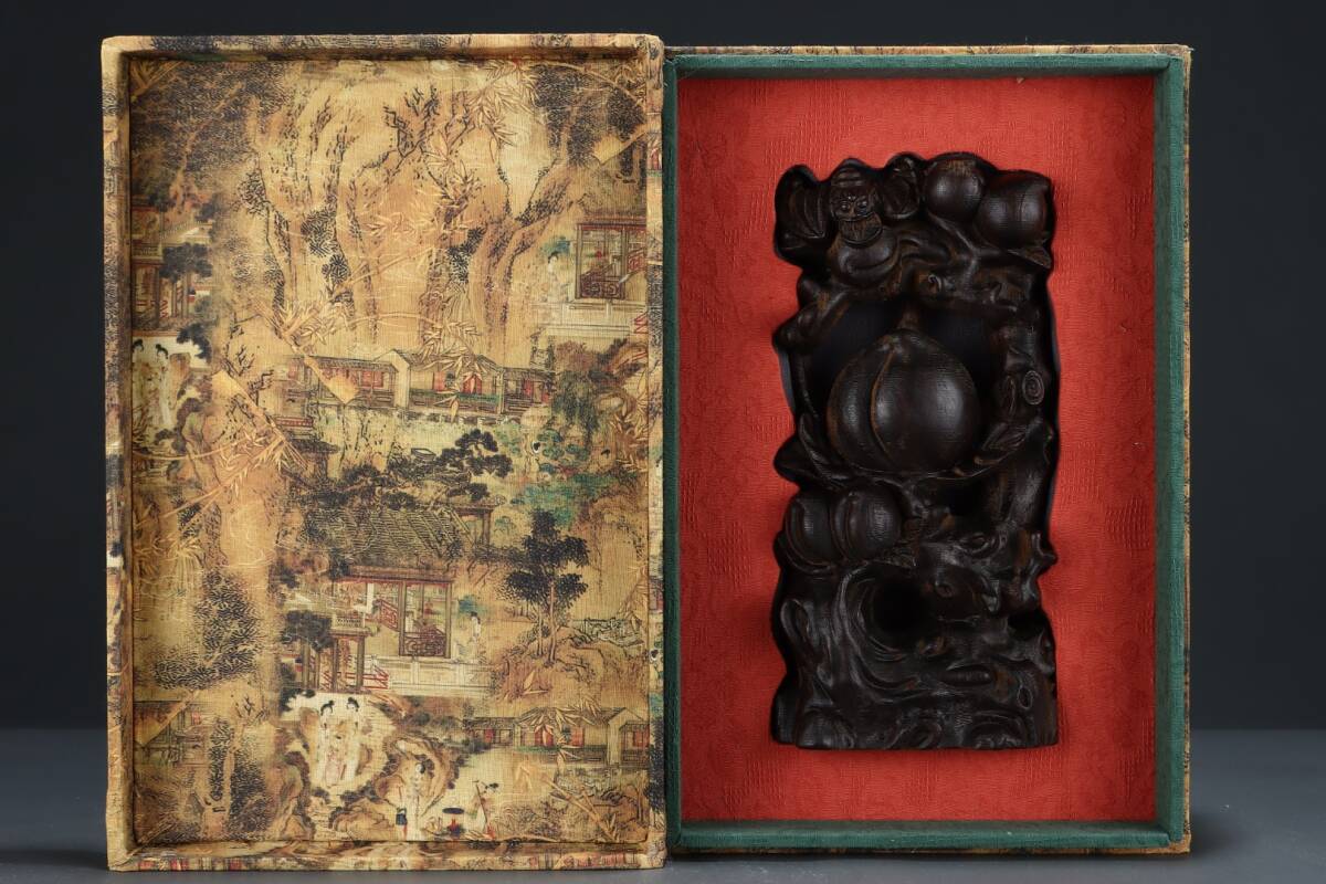 - 館蔵 沈香木彫 蟠桃 擺件 時代物 古置品 賞物 貴重 稀少珍品 中国古美術 古美味 蔵出