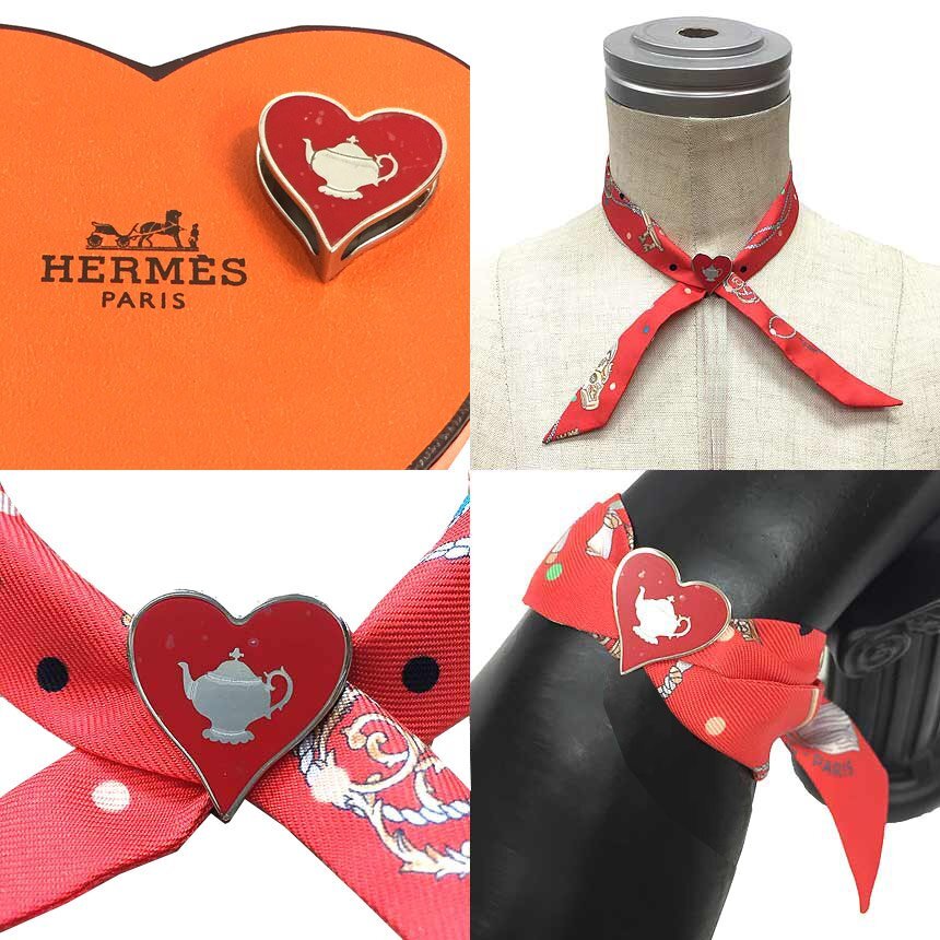 - セール HERMES エルメス ツイリー用 ティータイム ハート型 ルージュ シルバー金具 スカーフリング 2021年 秋冬 未使用 送料無料 aq6554