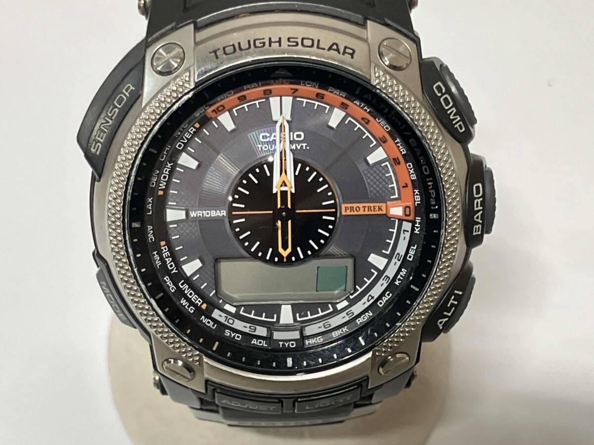 - 【ジャンク】 CASIO カシオ PROTREK PRW-5000 5114 プロトレック 黒文字盤 電波ソーラー メンズ 腕時計