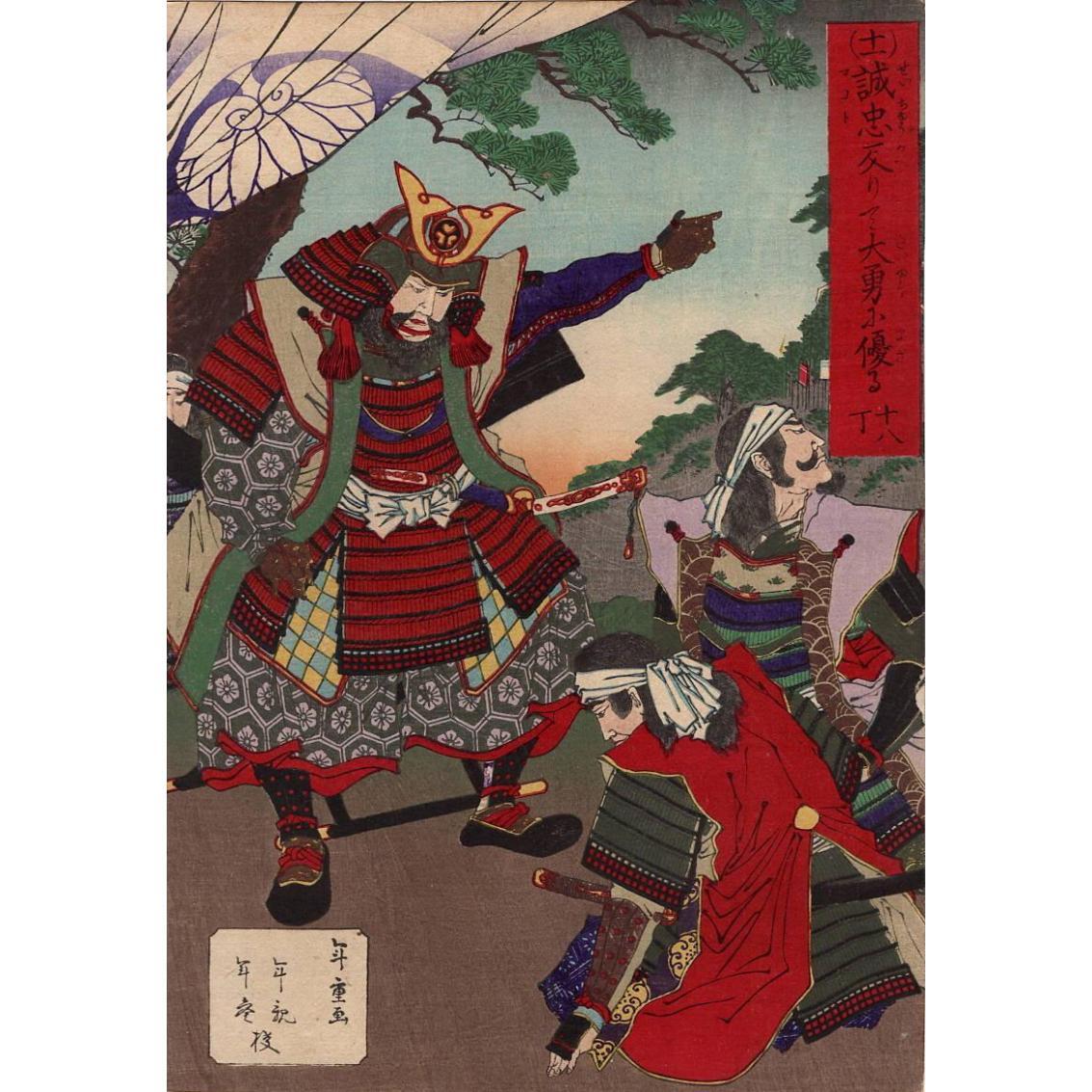 - 1-1.真作【浮世絵】年重画 誠忠交りを大勇小優る 錦絵修身談 巻十八丁 木版画 蔵出し