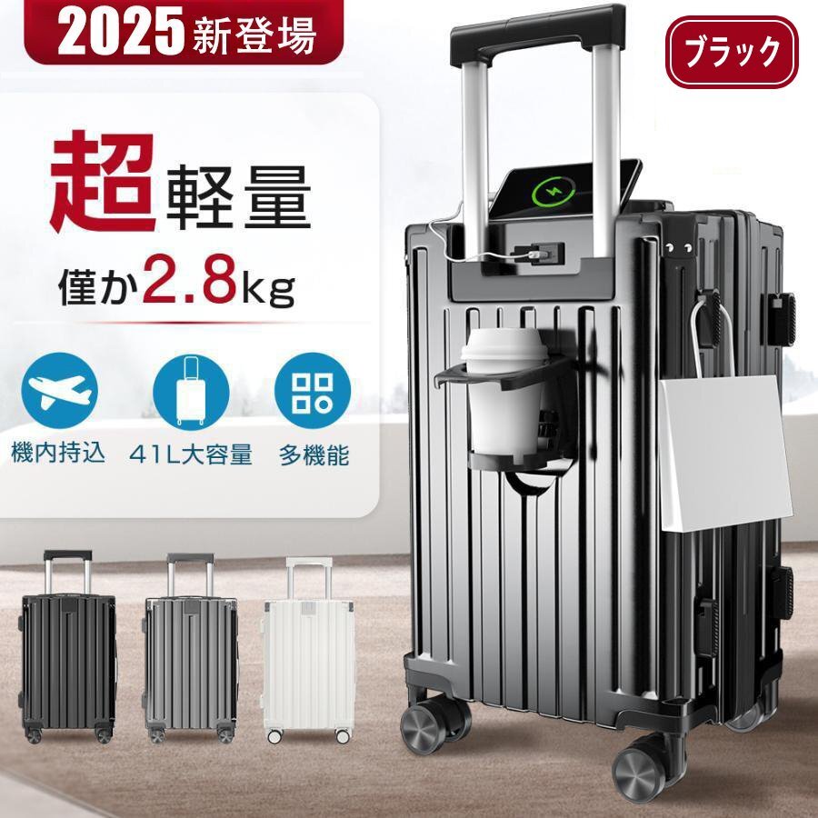 > キャリーケース スーツケース キャリーバッグ スーツケース 機内持ち込み Sサイズ 軽量2.8KG 静音 大容量40L USBポート ブラック hw815bk