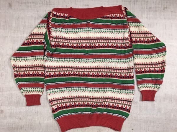- RED HOT BLUE 民族エスニック フォークロア 90s 韓国製 クリスマスカラー ボートネック ジャガードニットセーター レディース 白赤緑