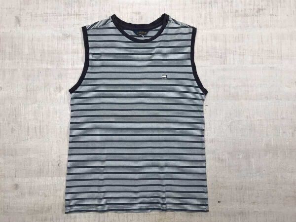 > ウールリッチ WOOLRICH オールド アメカジ アウトドア 古着 ボーダー タンクトップ ノースリーブ Tシャツ レディース コットン100% L 青 白