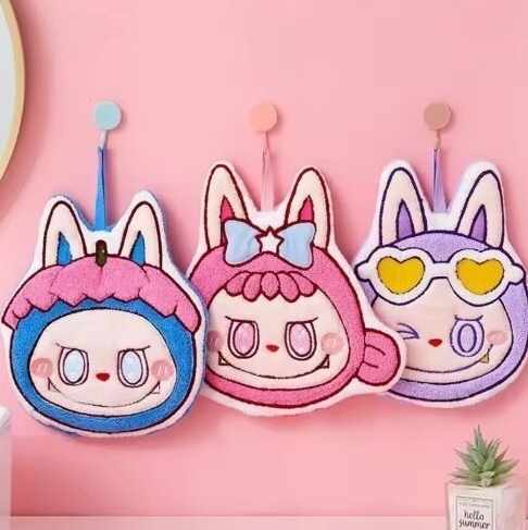 - ラブブ LABUBU かわいい キャラクターハンドタオル 3個セット 吸水速乾 ふわふわ 3種類 吊り下げタオル