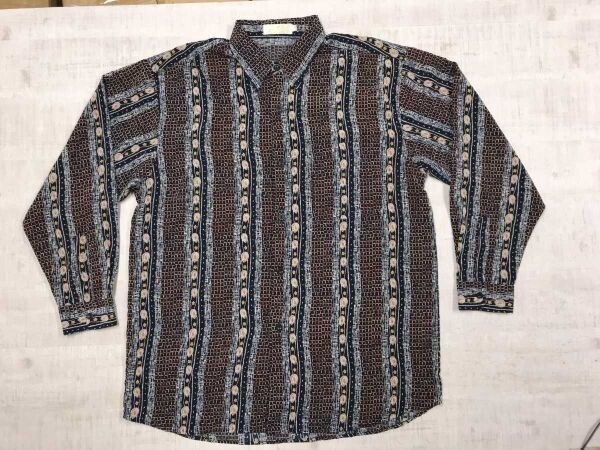 > BOBO in wardrobe 昭和レトロ ストライプ調 花柄 格子 長袖 ドレス シャツ メンズ ポリエステル100% L 紺 茶色
