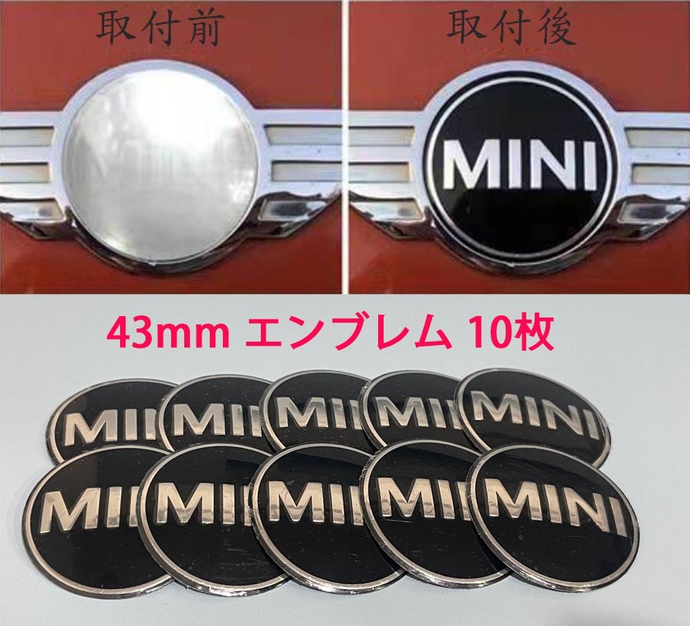 - ☆43㎜×10枚☆ エンブレム☆ミニクーパー R50 R56 リア フロント 裏面両面テープ付 湾曲加工済み 補修 リペア