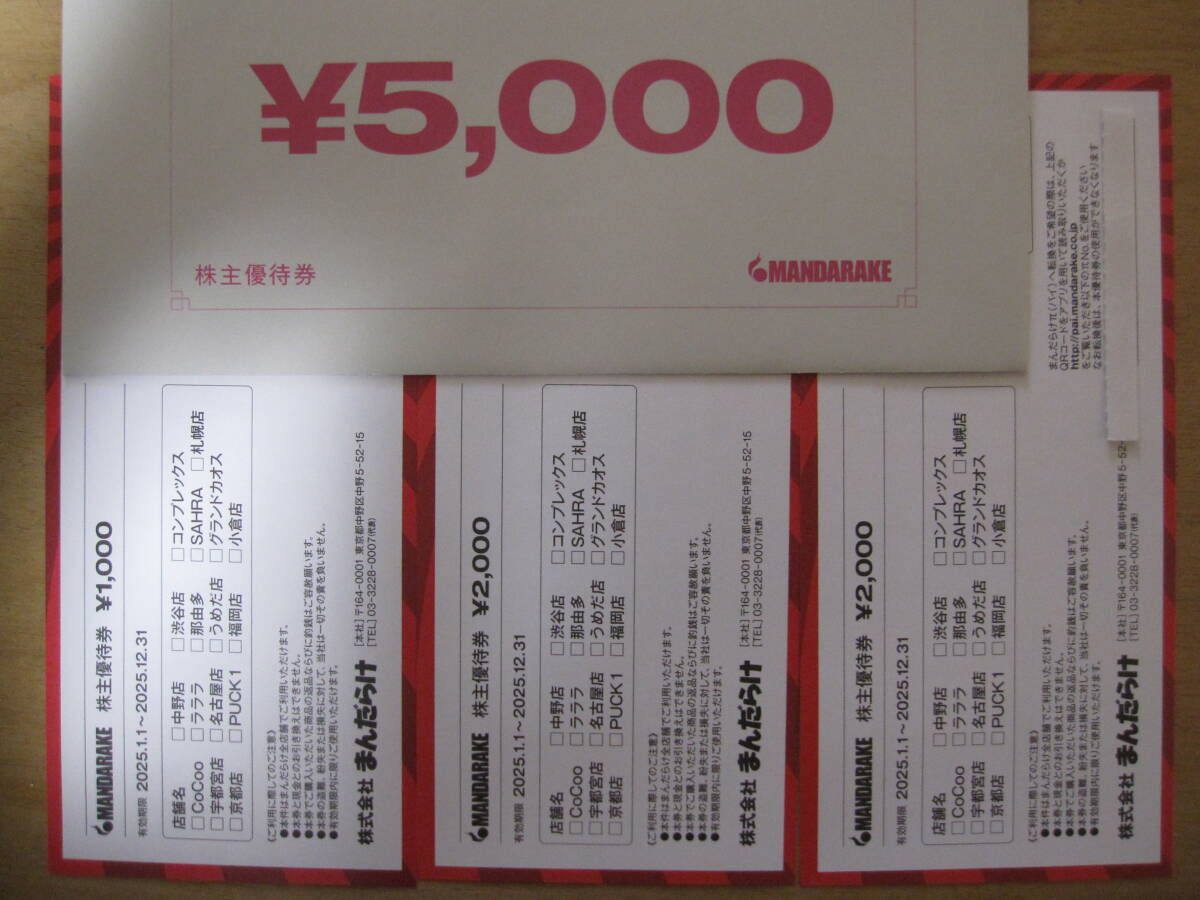 - 1◆まんだらけ株主優待◆株主優待券5,000円(2,000円2枚+1,000円1枚)◆2025年12月31日まで◆