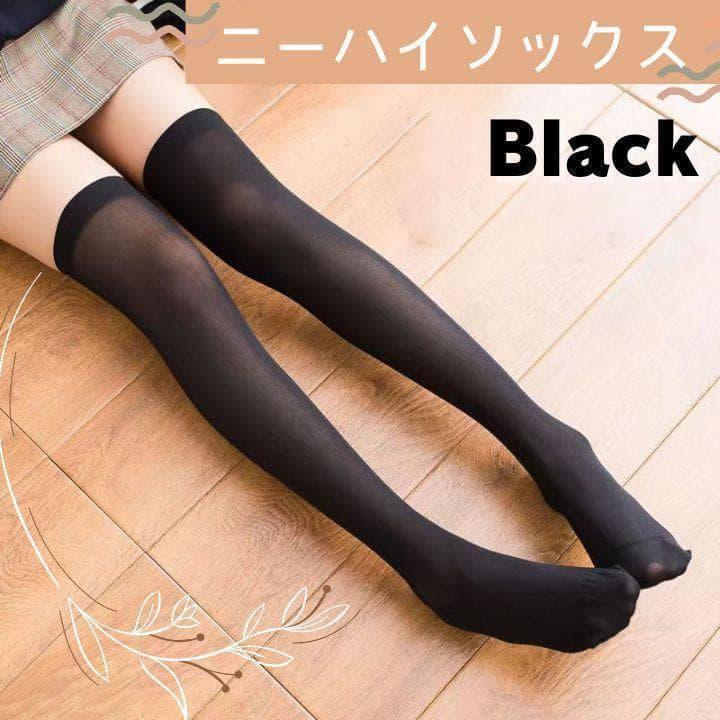 - 激安【新品】ニーハイ ソックス コスプレ ロング丈 靴下 黒 ブラック 仮装 ハイソックス