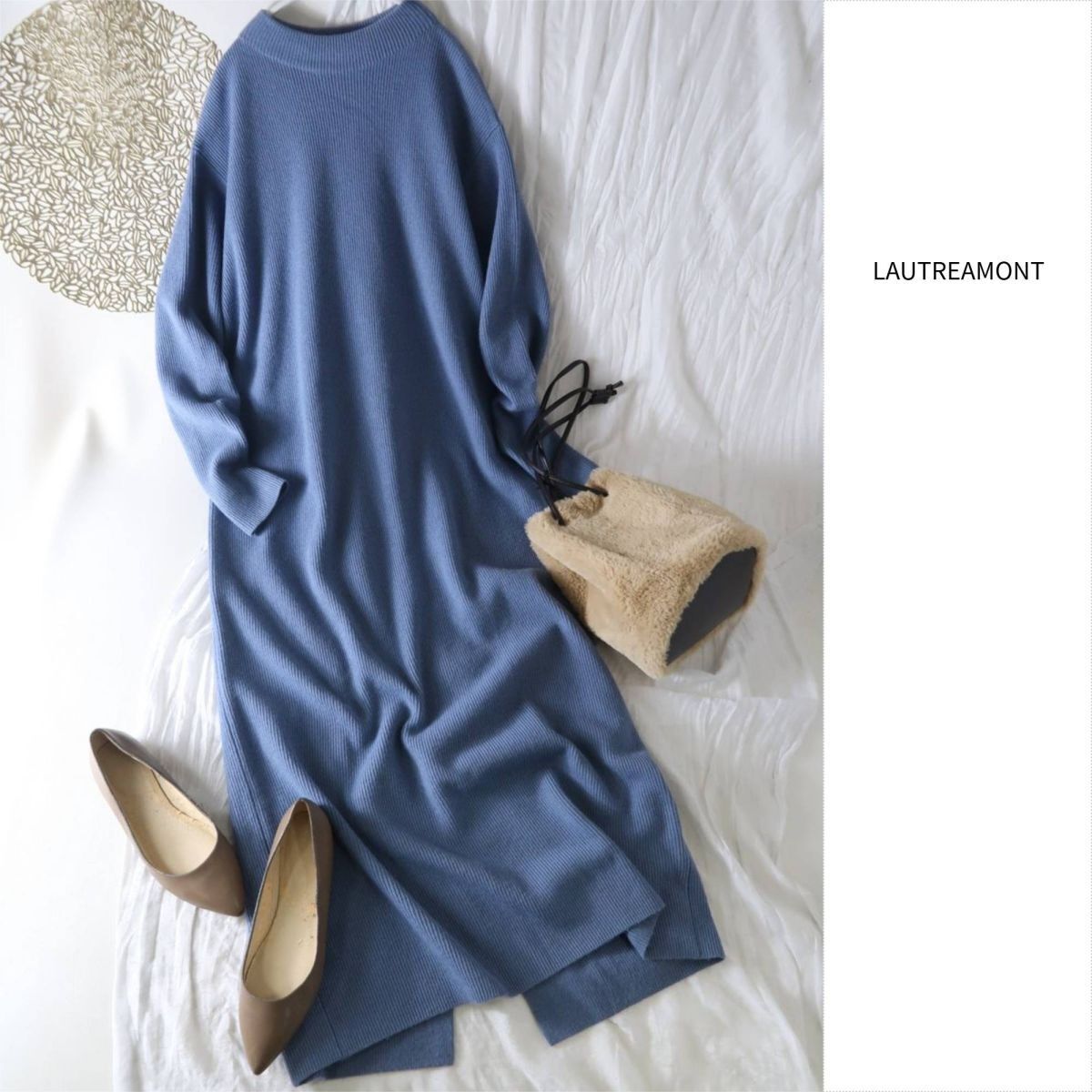 > 2.8万☆ロートレアモン LAUTREAMONT☆洗える 毛100% スタンドネックのロングニットワンピース 38サイズ☆A-O 6142