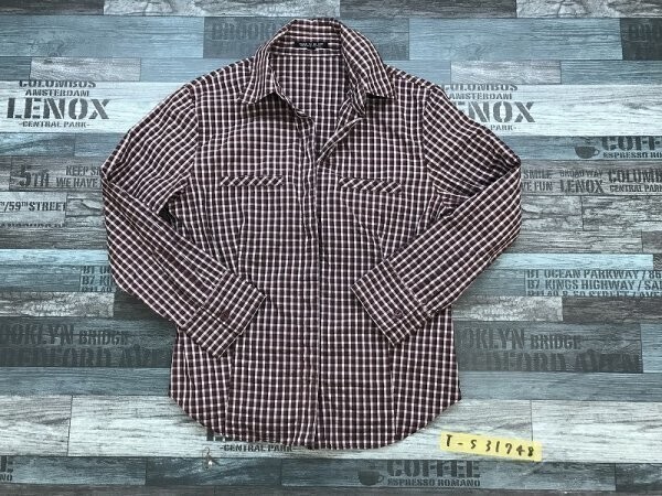 > COMME CA DU MODE コムサデモード レディース チェック柄 長袖シャツ M 白エンジ茶